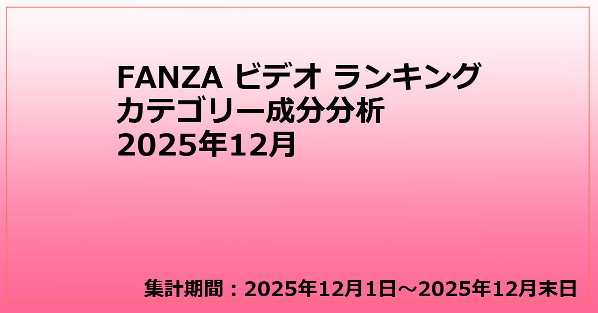 FANZAビデオ カテゴリランキング 2025年12月2025年12月のカテゴリーランキングです。1位には、単体で4K美少女でアップで見ごたえのある作品となっています。VR作品もランキングに入っていますが、傾向としては同じように美少女の高画質の傾向です。